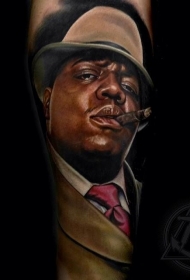 非常逼真的彩色吸烟男子肖像手臂纹身图案