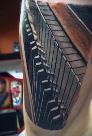 手臂非常漂亮的彩色骷髅骨架弹吉他纹身图案
