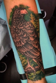华丽的天然彩色鹰和森林手臂纹身图案