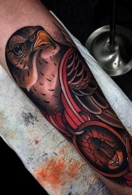 手臂old school卡通点刺彩色的鳄鱼与匕首纹身图案