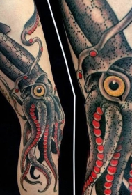 old school五彩的鱿鱼手臂纹身图案