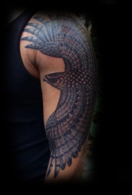 手臂辉煌的黑白老鹰纹身图案