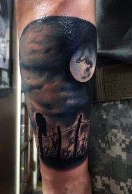 神秘的黑暗夜空乌鸦手臂纹身图案