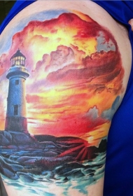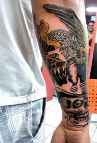 手臂惊人的西方主题房屋鹰和人像纹身图案
