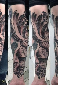 非常漂亮的彩色夜空和大鹰手臂纹身图案