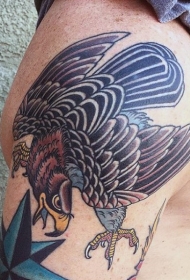 old school手绘大鹰彩色手臂纹身图案