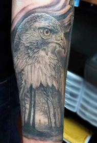 手臂令人惊叹的鹰与神秘森林纹身图案