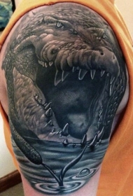 手臂巨大的可怕鳄鱼和水滴纹身图案