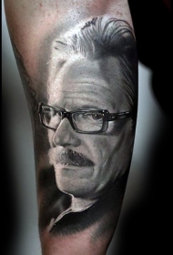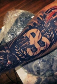 手臂华丽的彩色字母与子弹卡通纹身图案