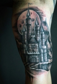 手臂写实风格的黑白幻想女子和狼纹身图案