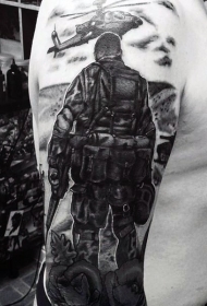 手臂惊人的写实现代军事飞机和战士纹身图案
