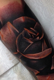 惊人的彩色逼真骷髅与玫瑰手臂纹身图案