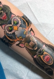 手臂简单设计的彩色血腥吸血鬼女子纹身图案