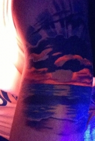 手臂很棒的彩色夜晚城市怪物纹身图案