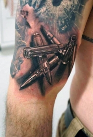 大臂难以置信的彩绘逼真步枪子弹纹身图案