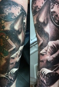 手臂华丽的赌博主题男性肖像纹身图案