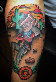 old school彩色墨西哥牛仔骷髅手臂纹身图案