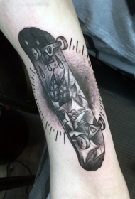 手臂令人毛骨悚然的写实黑色海盗纹身图案