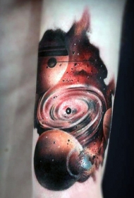 美丽的彩色小玫瑰与星空手臂纹身图案