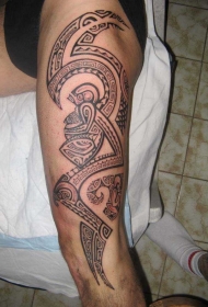 大腿波利尼西亚风格的黑色部落饰品纹身图案