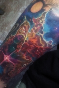 手臂神秘的太阳与两双眼睛点刺纹身图案