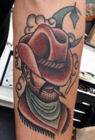 手臂简单的彩绘西部牛仔和手枪纹身图案