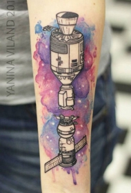 old school彩绘水墨风格太空船手臂纹身图案