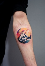 手臂未知风格画黑色无脸肖像与山脉纹身图案