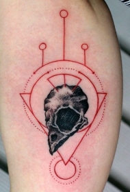 手臂黑色鸟头骨和红色几何纹身图案