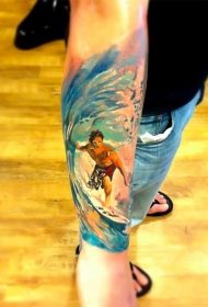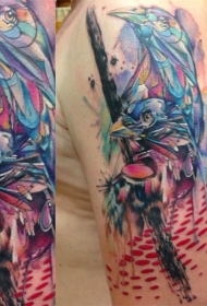 小臂水彩画风格手绘小鸟七彩纹身图案