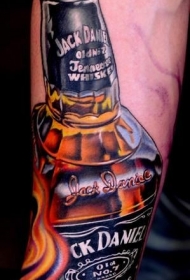 手臂非常逼真的五彩威士忌瓶子纹身图案