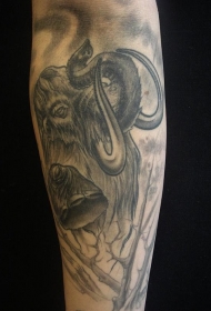 手臂灰色的刺猬头部纹身图案