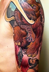 大臂精彩的莲花和鲤鱼彩色纹身图案