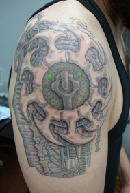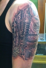 大臂巨大的机械齿轮纹身图案