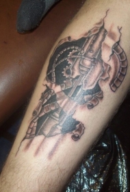 机械齿轮和撕皮手臂纹身图案