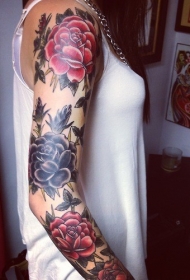 手臂彩色的卡通龙猫和樱花菊花纹身图案