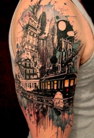 中性风格的邪恶小丑彩绘手臂纹身图案