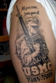 手臂非常逼真的绿色眼睛和字母纹身图案
