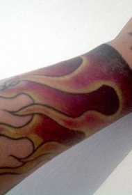 手臂上的两层火焰和星星纹身图案