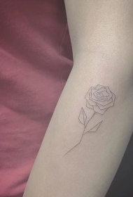 手臂简洁线条勾勒的玫瑰优雅纹身图案