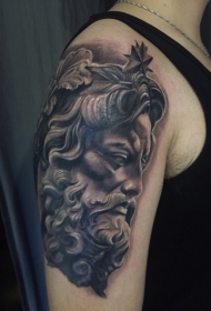 男生手臂上黑白点刺技巧几何元素人物肖像纹身图片