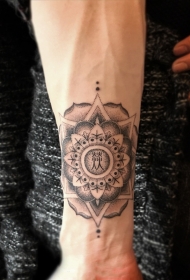 手臂黑白灰风格点刺简单个性线条纹身风景图片