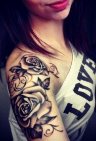 手臂上纹身黑白灰风格点刺纹身植物纹身素材文艺花朵纹身图片