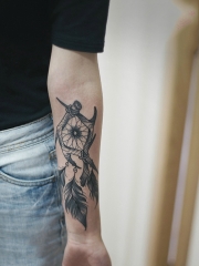 黑色手臂线条纹身笑脸面对和平鸽纹身图片