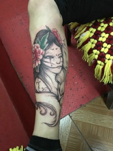 人美花娇,手臂艺妓肖像彩绘纹身图案