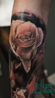 铿锵玫瑰,手臂写实风玫瑰纹身图案