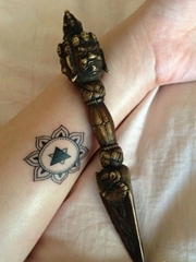 女性手臂上一款小小的梵花图腾纹身+++女性