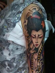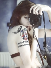 手背一枚黄头发兔耳朵卡通美女纹身图案