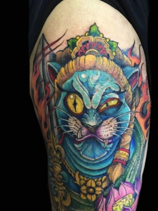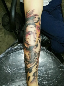 花臂抽象几何图形骷髅头眼睛纹身图案