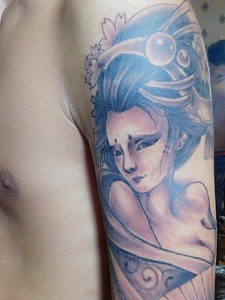 手臂一对情侣肖像纹身刺青深爱着彼此